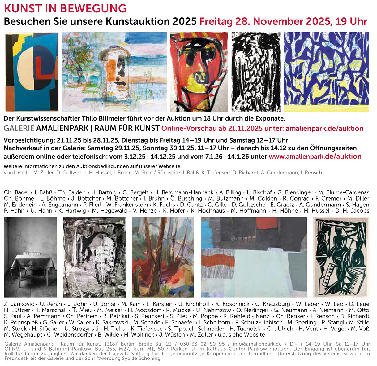Am Freitag 28. November 2025, 19 Uhr Auktion in der Galerie