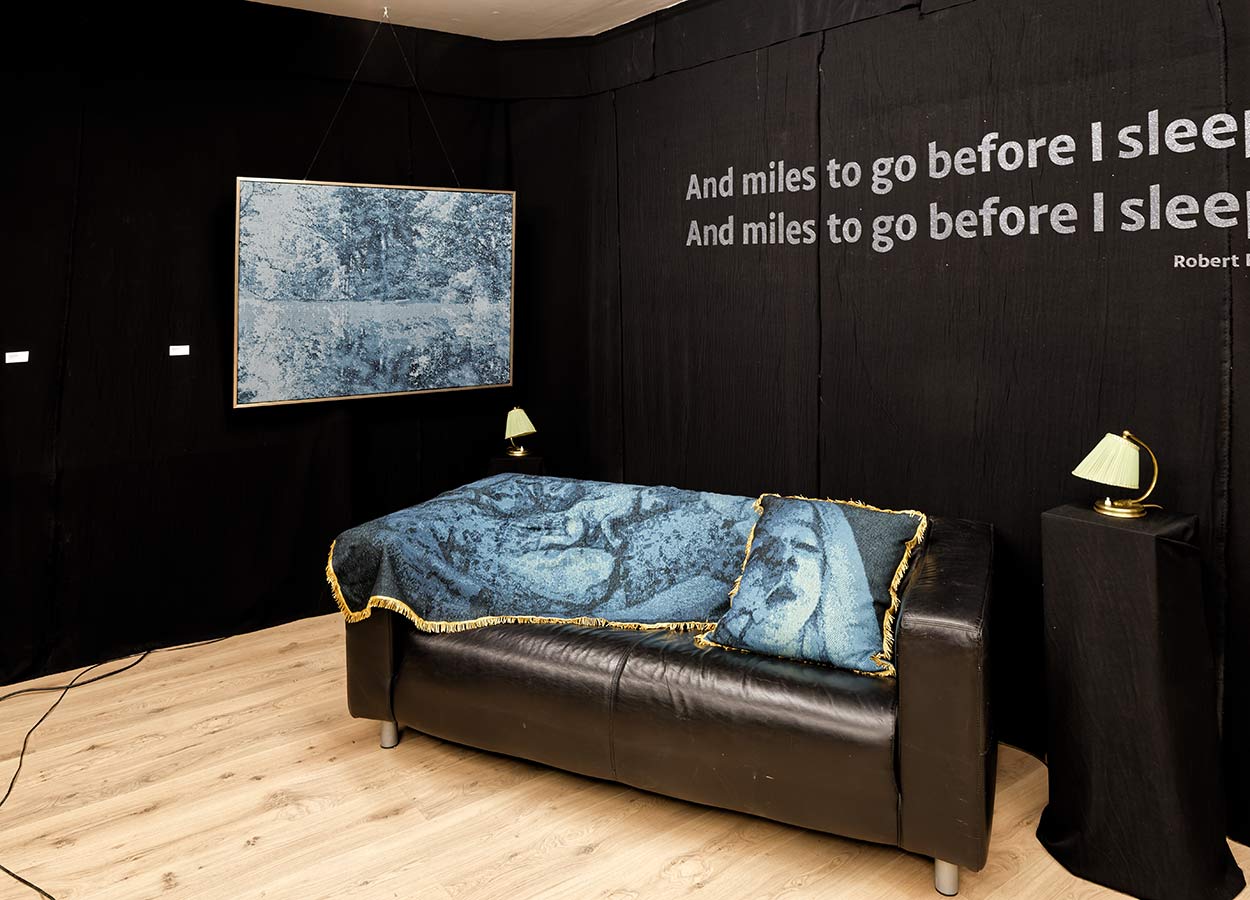 Taucher – Bruno I , 2019, Baumwolle /Jacquard Stricktechnik auf Keilrahmen, 60 x 103 cm